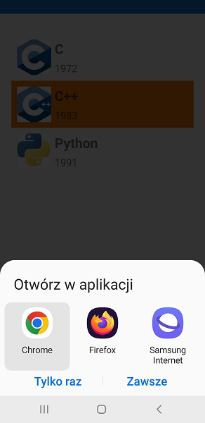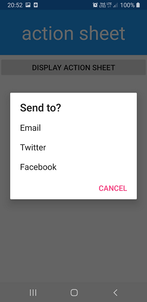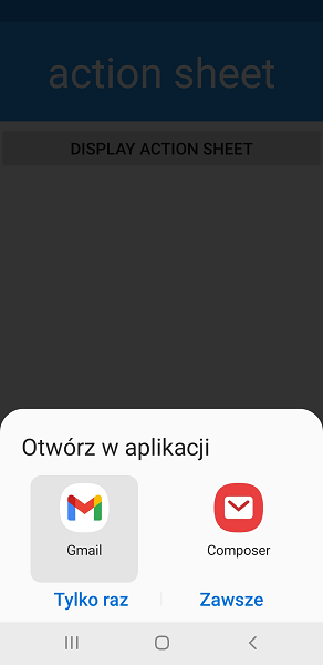 actionSheet -po wybraniu akcji odpowiednia aplikacja uruchamia się (jeśli jest zainstalowana)