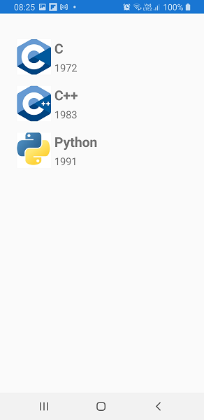 programmingLanguages - wykorzystanie kontrolki CollectionView