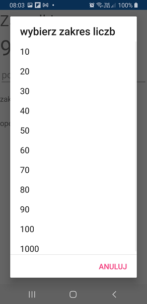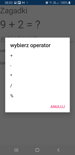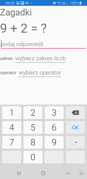 zagadki - należy podać wynik, liczby są losowane z zakresu, który można podać, operator działania jest losowany