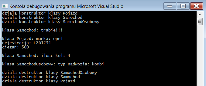 mechanizm obslugi wyjatkow - własne klasy wyjątków dziedziczące z klasy bibliotecznej exception