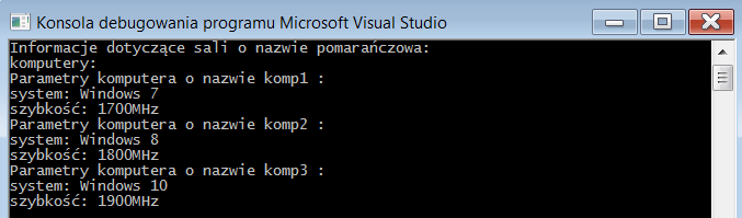 reprezentacja sali szkolnej jako obiektu klasy Sala z listą komputerów - obiektów klasy Komputer