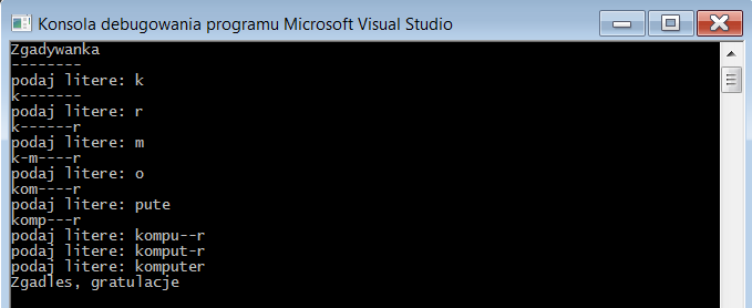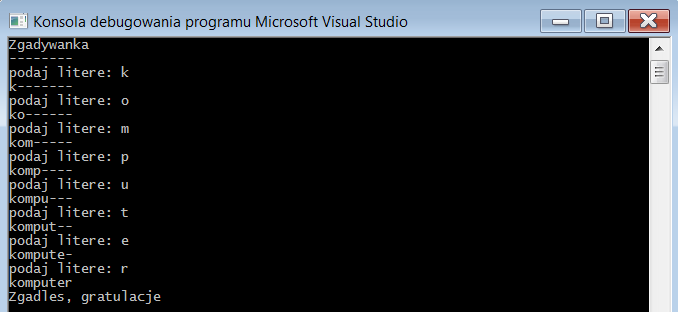 gra w powieszankę, podział na pliki, dokumentacja: zgadywanka_2.0\zgadywanka\doc\html\index.html generated by doxygen
