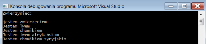 zwierzyniec 2 - polimorfizm dynamiczny, klasa abstrakcyjna, interfejs, wielodziedziczenie