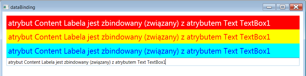 dataBinding - wiązanie danych: to co wpiszemy w TextBoxie pokazuje sie w Labelu