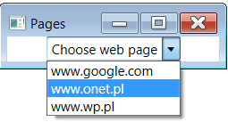 webPages - kontrolka ComboBox, uruchamianie przeglądarki z podanym adresem